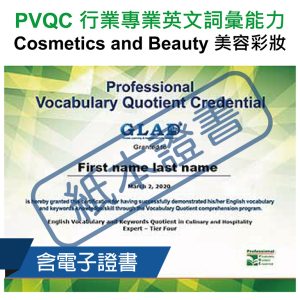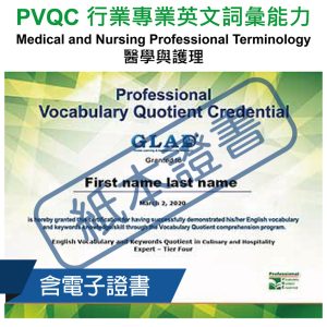 2.PVQC行業專業英文[測驗一]不低於40分,[測驗二]到[測驗六]每項測驗皆不低於70分,總分達到390分(含)以上(將於證書額外加註通過Spelling)