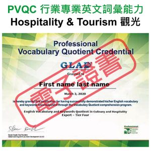 2.PVQC行業專業英文[測驗一]不低於40分,[測驗二]到[測驗六]每項測驗皆不低於70分,總分達到390分(含)以上(將於證書額外加註通過Spelling)
